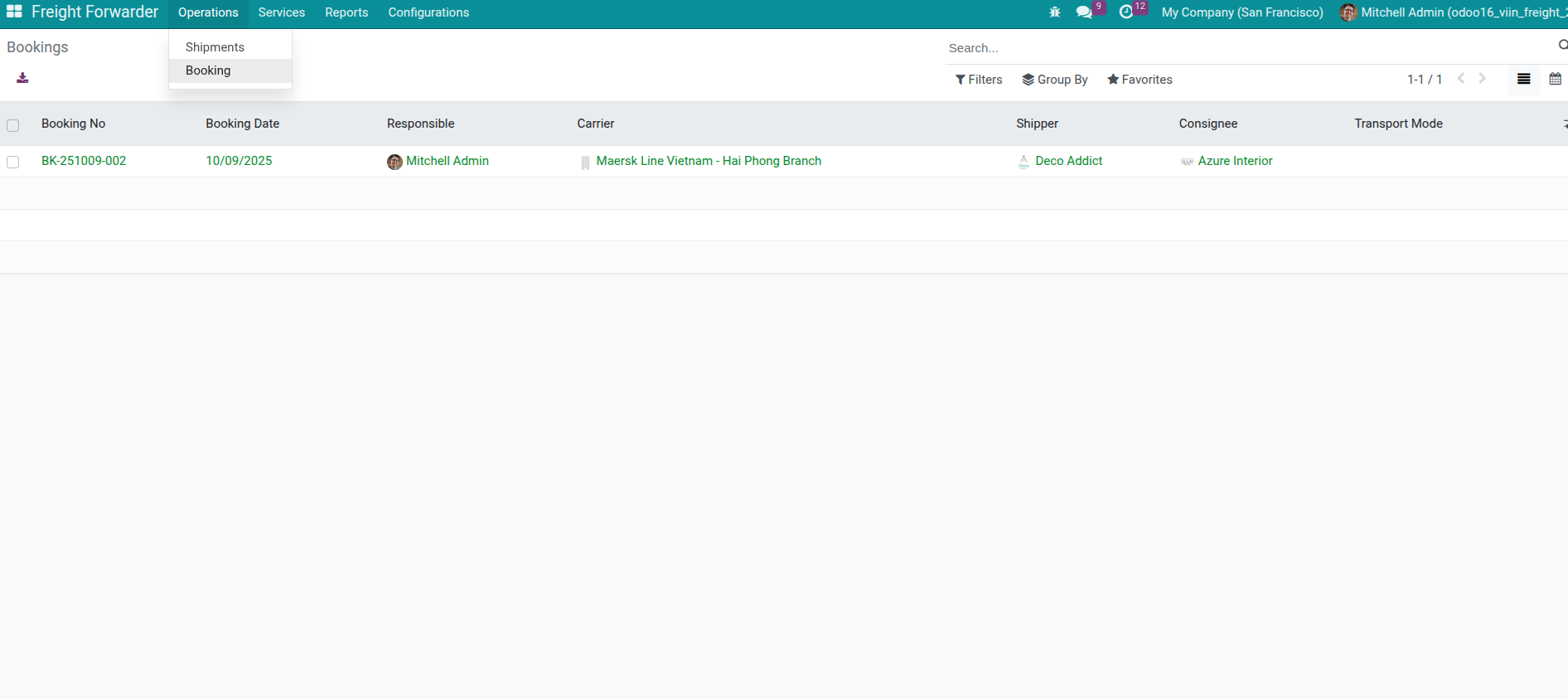 Click Booking button on shipment → System automatically creates booking for packages not yet booked