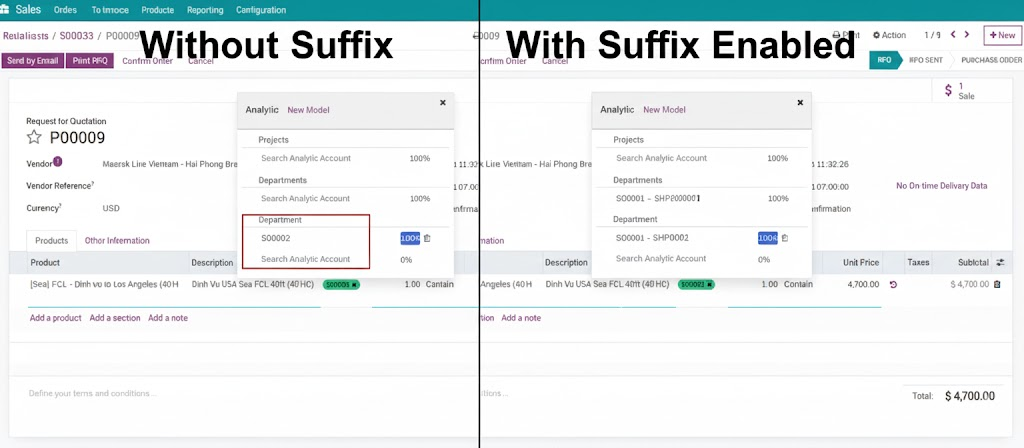 Each shipment deserves its own analytic account. The suffix simply makes the link obvious inside every purchasing or accounting screen.