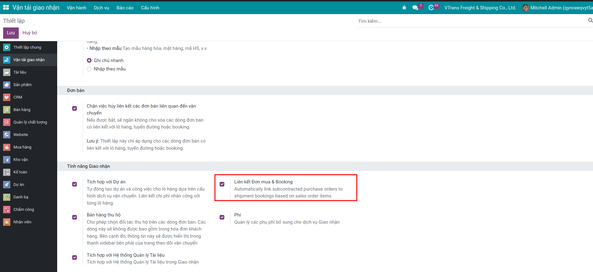 In Freight Features, tick Link Bookings & Purchase Orders.