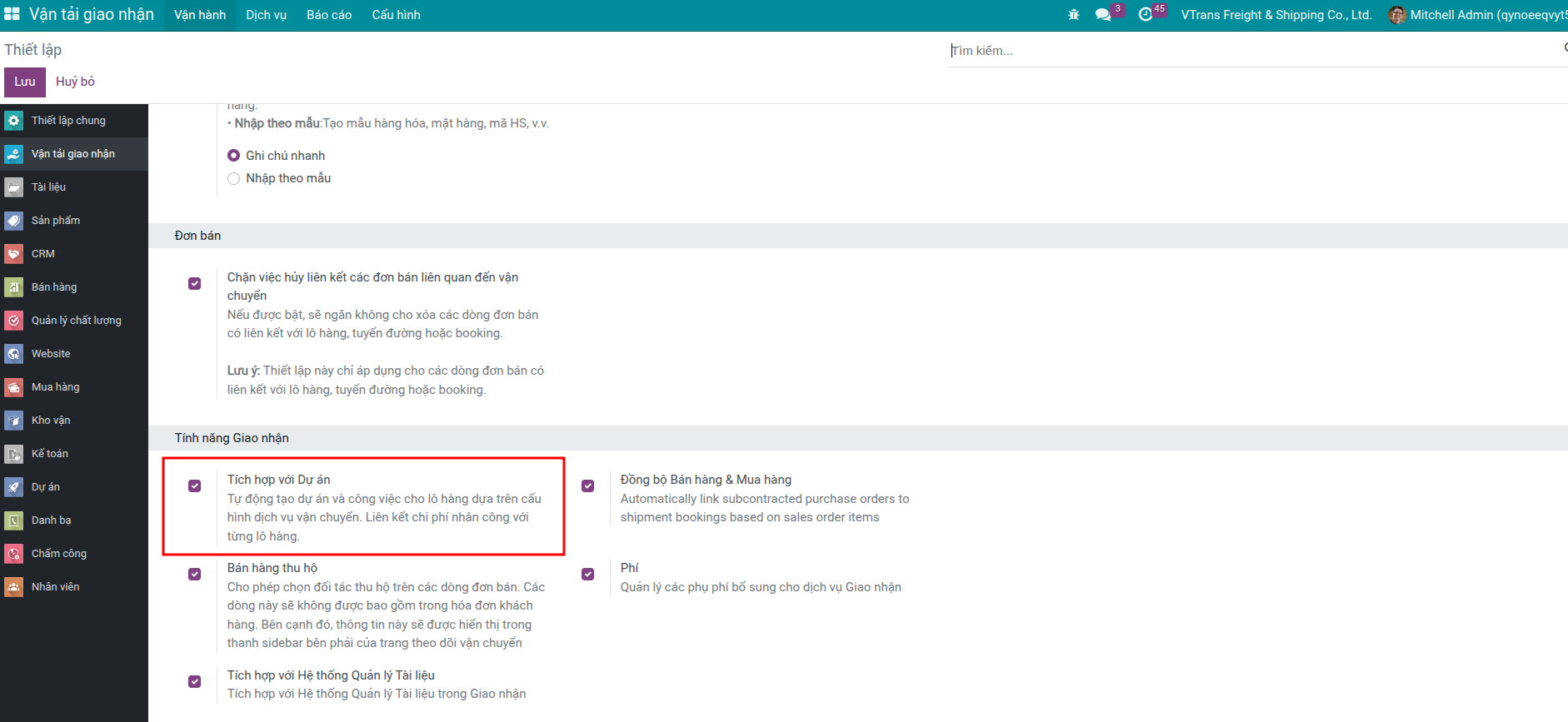 Turn on the Freight Project & Timesheet feature to connect shipments with dedicated projects and task lists so operations can plan workload, record timesheets, and capture labor costs automatically.