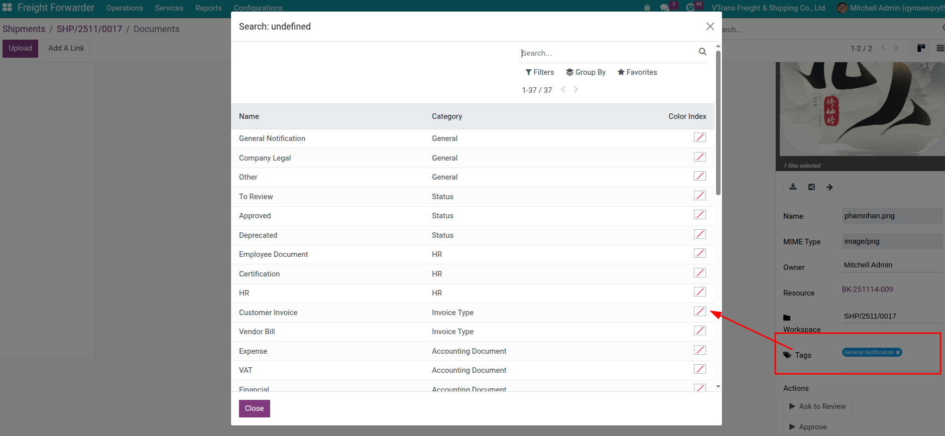 What happens if a file is uploaded without tags? It still links to the shipment, but search/automation becomes harder. Train users to add tags or set up rules that detect keywords in file names and auto-tag them.