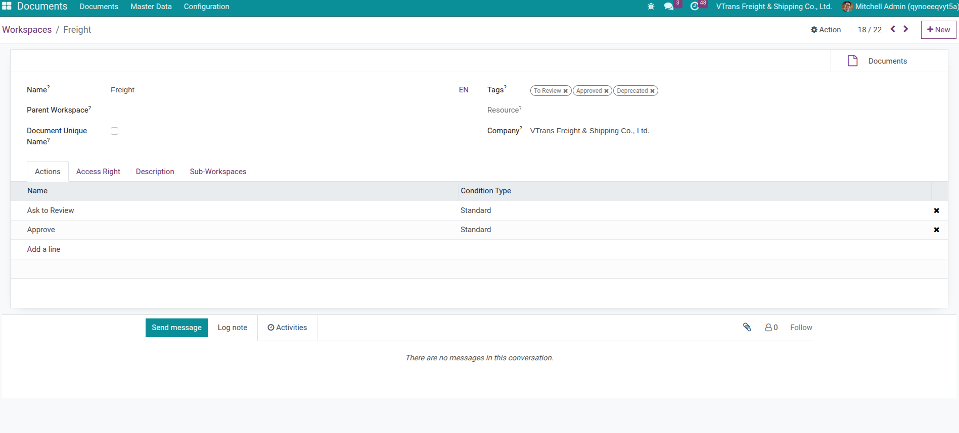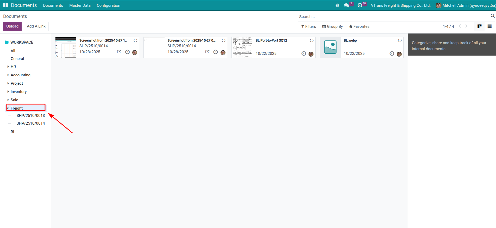 This installs Viindoo Documents (Enterprise) along with freight-specific workspaces and automation.