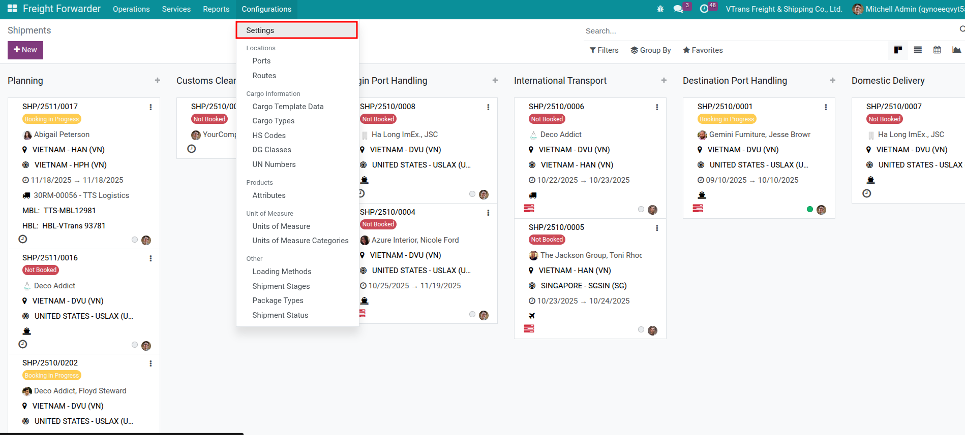 Go to Freight Forwarder > Configuration > Settings.