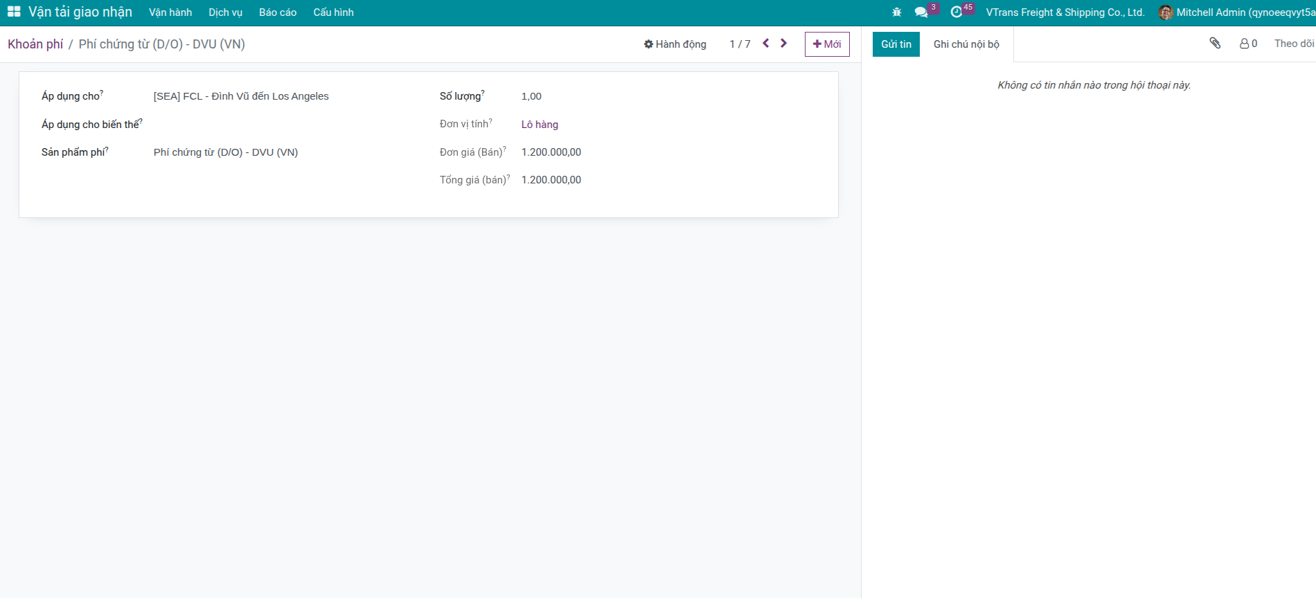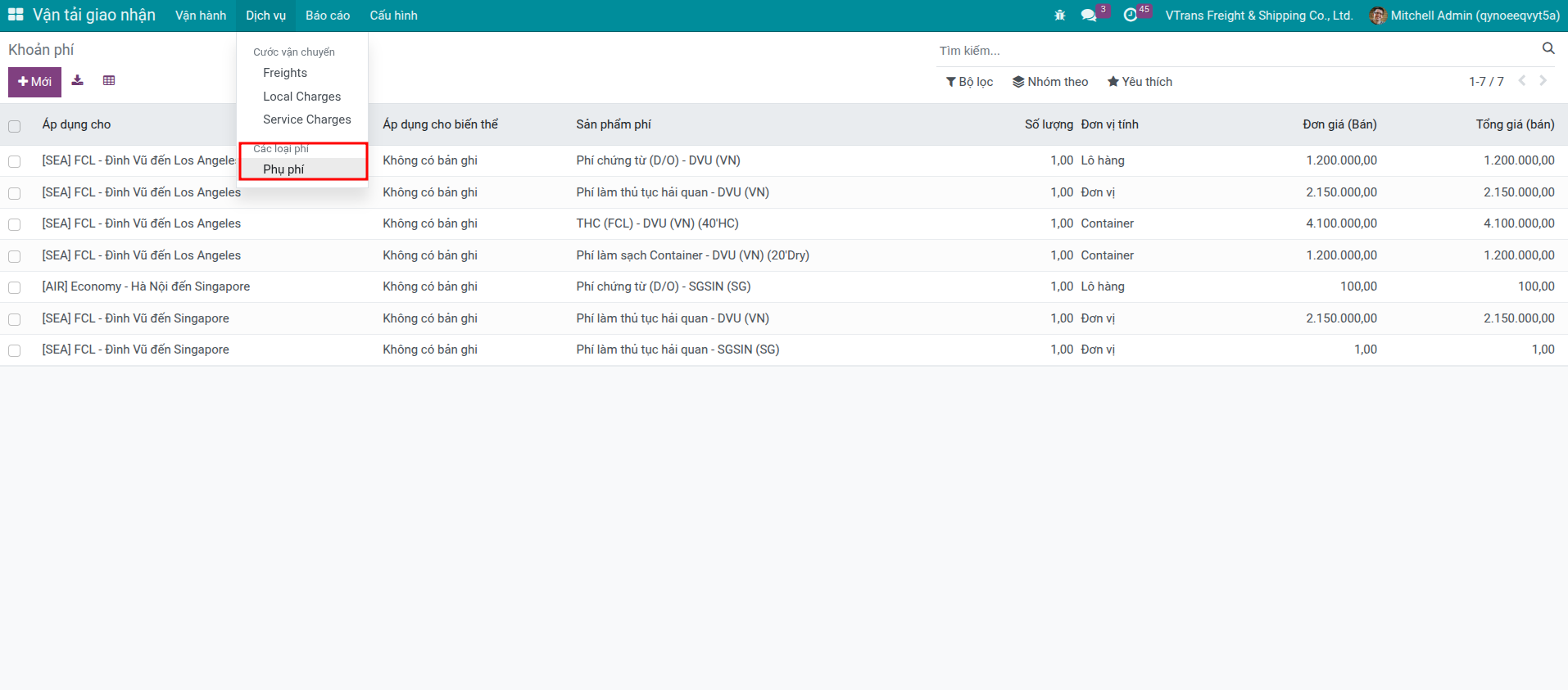 Menu path: Freight Forwarder > Services > Miscellaneous Fees > Fees.