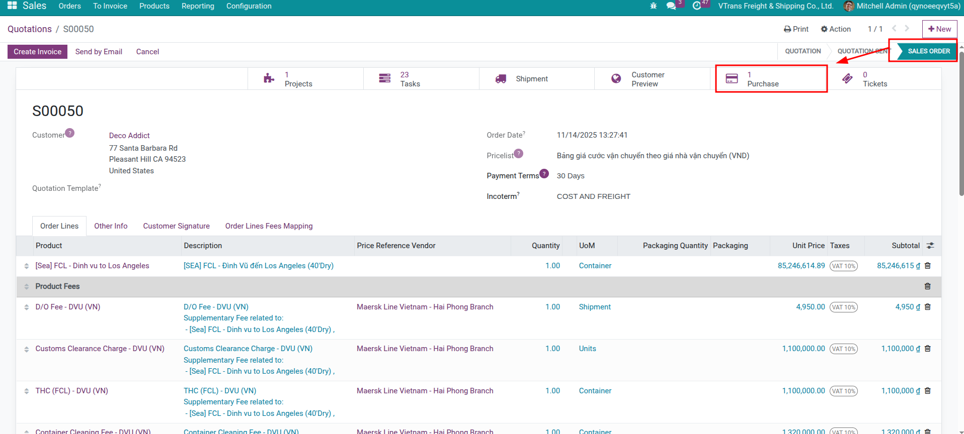 Viindoo creates the shipment, bookings, and purchase orders automatically.