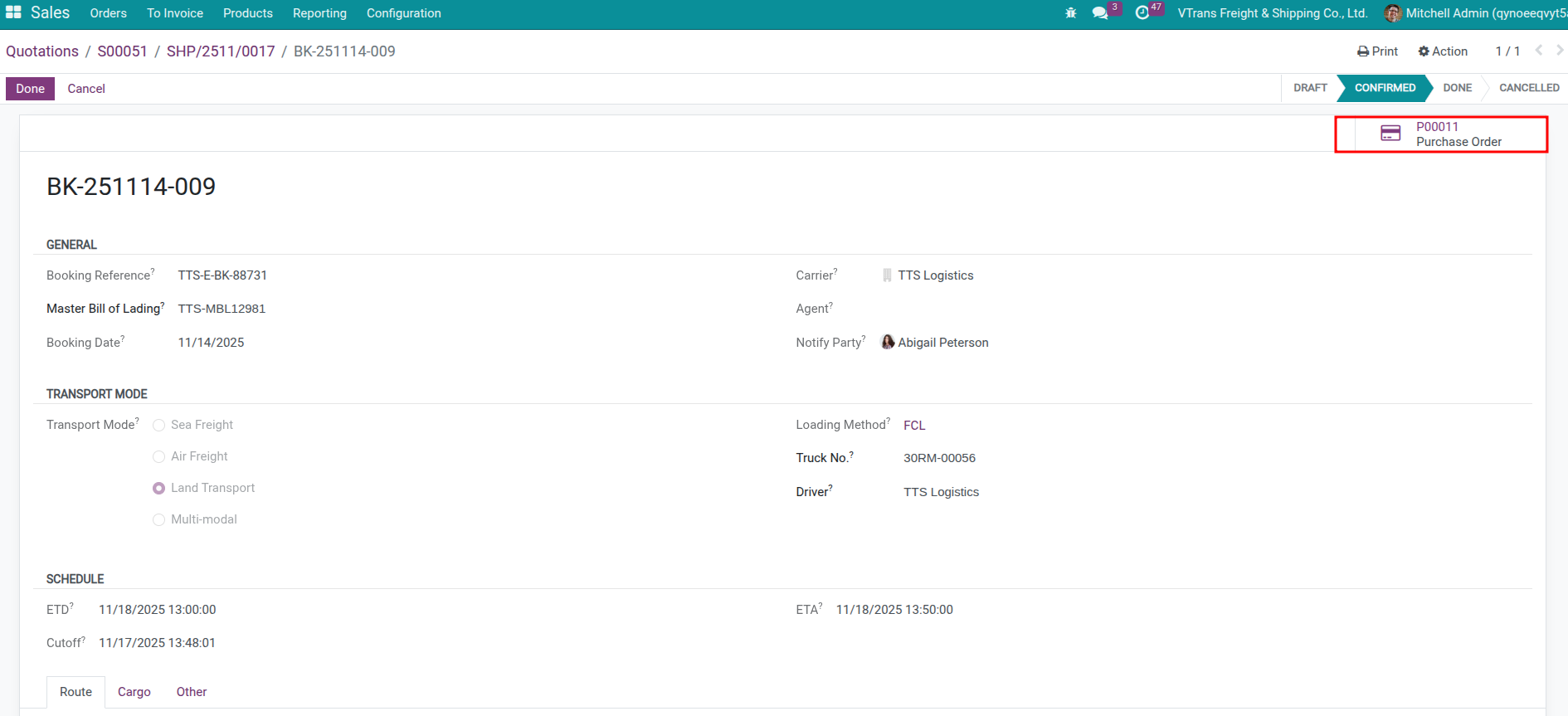 Create the booking and assign the carrier plus schedule details.