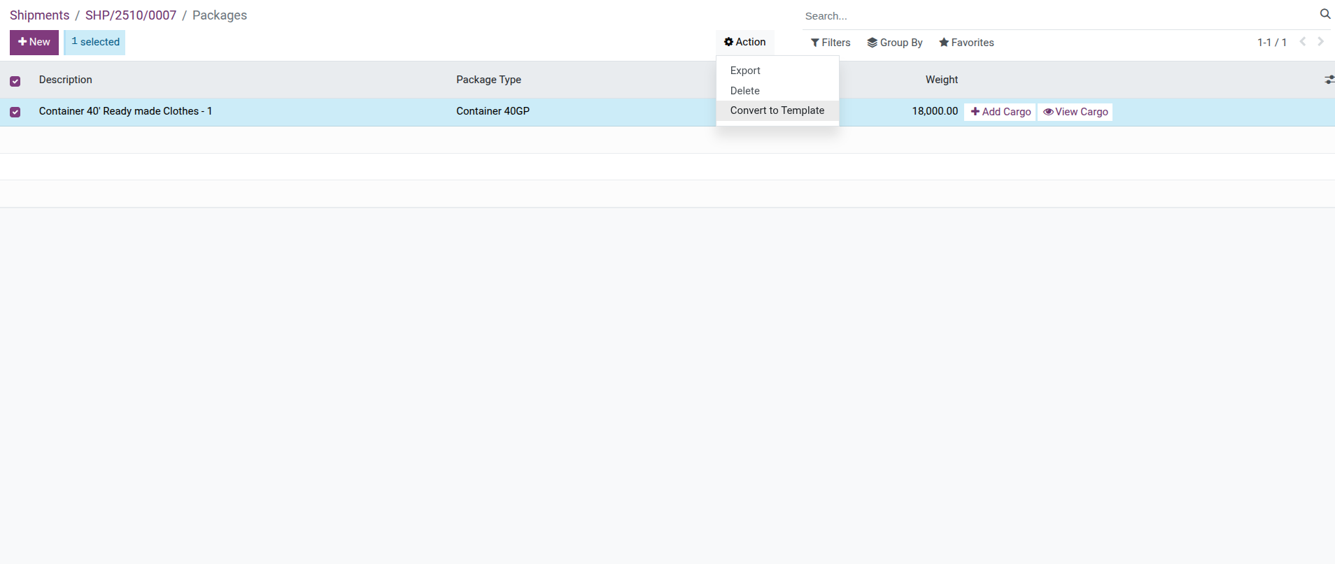 Ceramic Tiles Export - Customer Aonce, then each new shipment only needs: Add cargo template to shipment