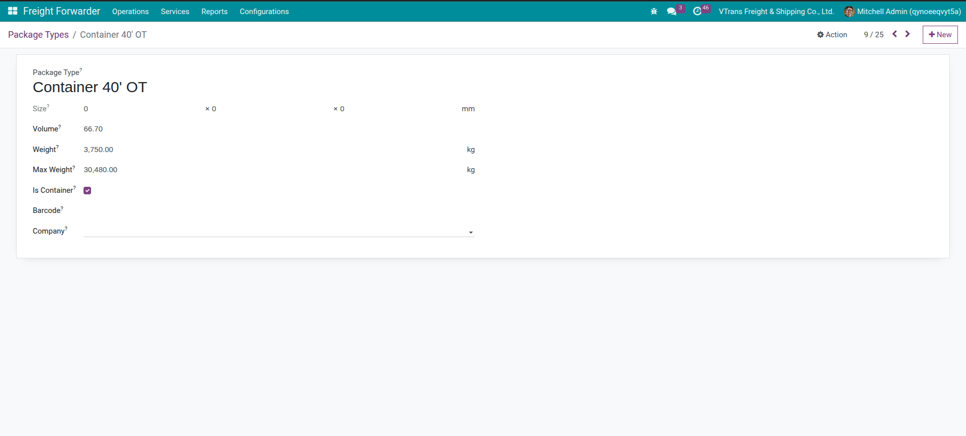 If you don’t have needed Package Type, go to Inventory > Configuration > Package Types to create new.