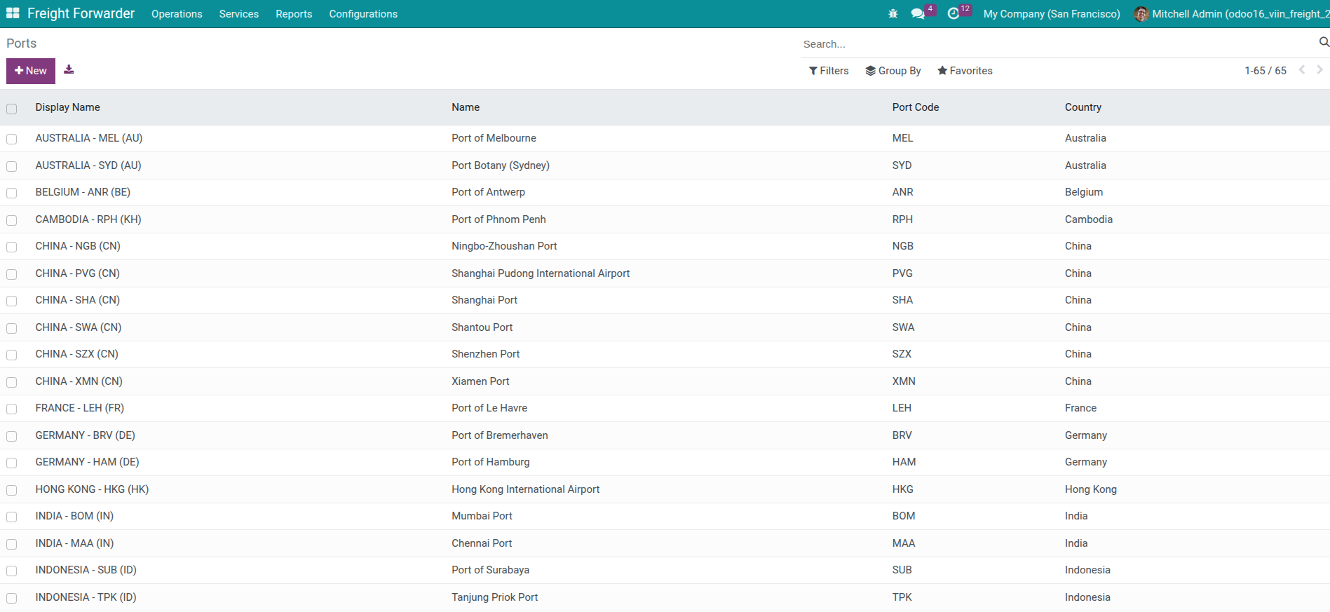 Access Freight Forwarder > Configuration > Locations > Ports