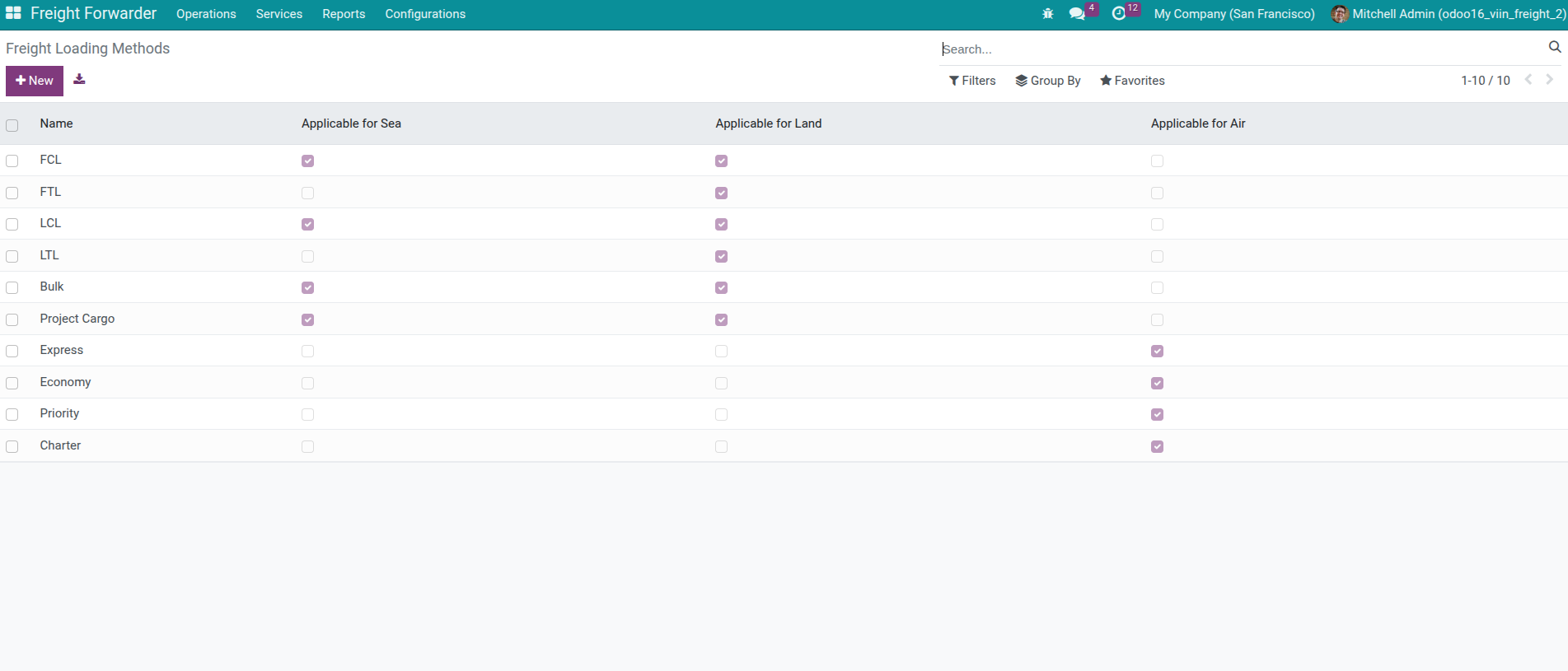 Access Freight Forwarder > Configuration > Other > Shipping Methods