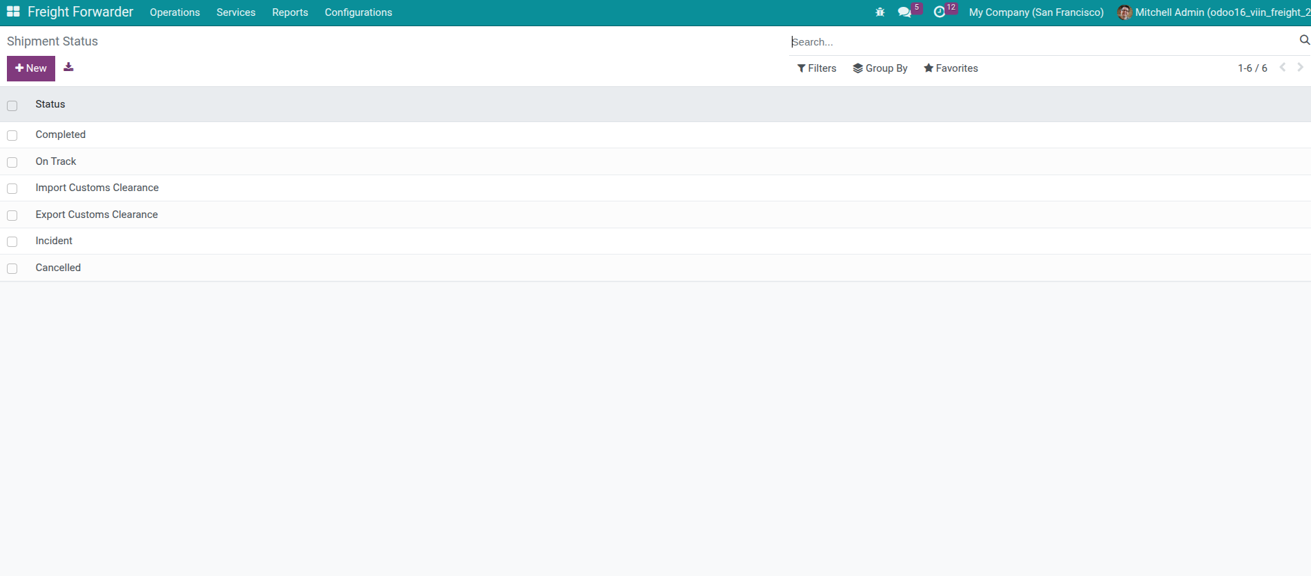 Menu: Freight Forwarder > Configuration > Status Templates |
