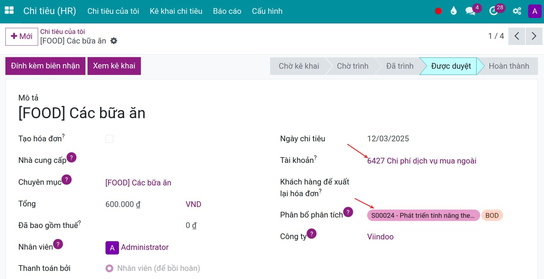Sau khi nhấn Tạo, hệ thống sẽ chuyển bạn đến giao diện ngân sách. Bạn có thể tiếp tục quy trình phê duyệt ngân sách.